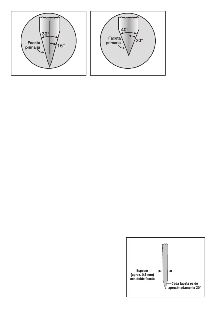 y están afilados con facetas más delicadas de 15 grados. (Vea la Figura 3a). Algunas hojas de