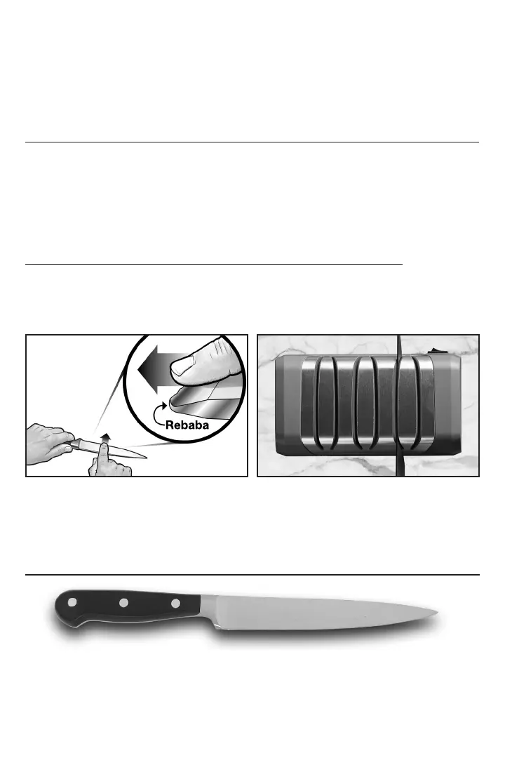 que se muestra. No mueva el dedo cuando lo desplace por el filo para evitar cortarse.