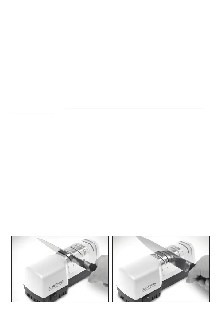 Remarque : Nettoyez toujours votre couteau avant de l’aiguiser ! Pour votre sécurité, tenez