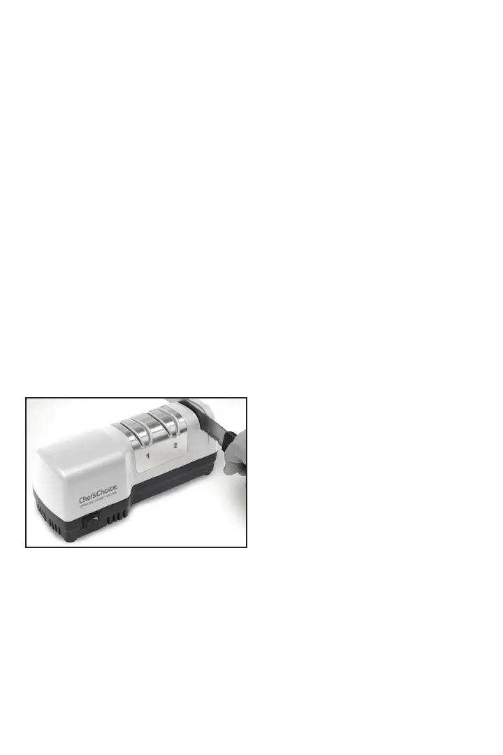 Serrated blades can be sharpened in Stage 3 (see Figure 7). Center the blade in the slot of