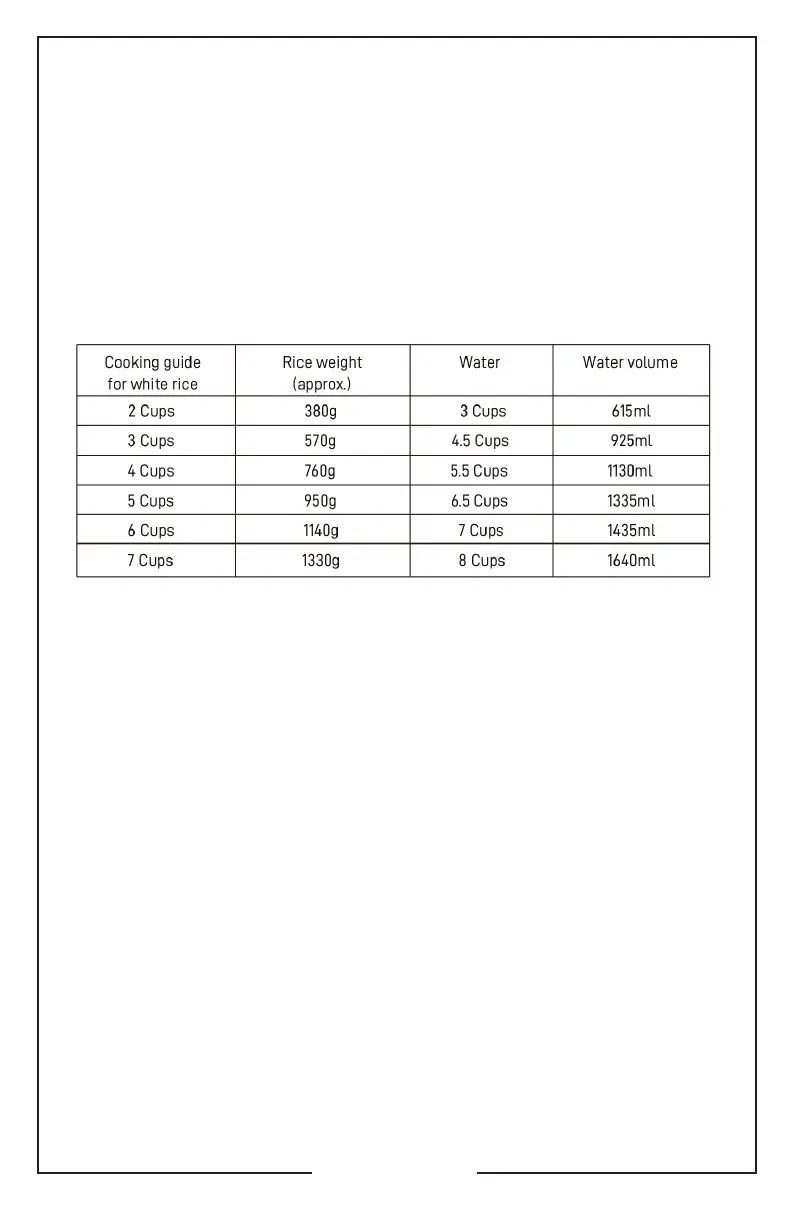 4. For different types of grains, follow the packaging instruction for correct water ratio.