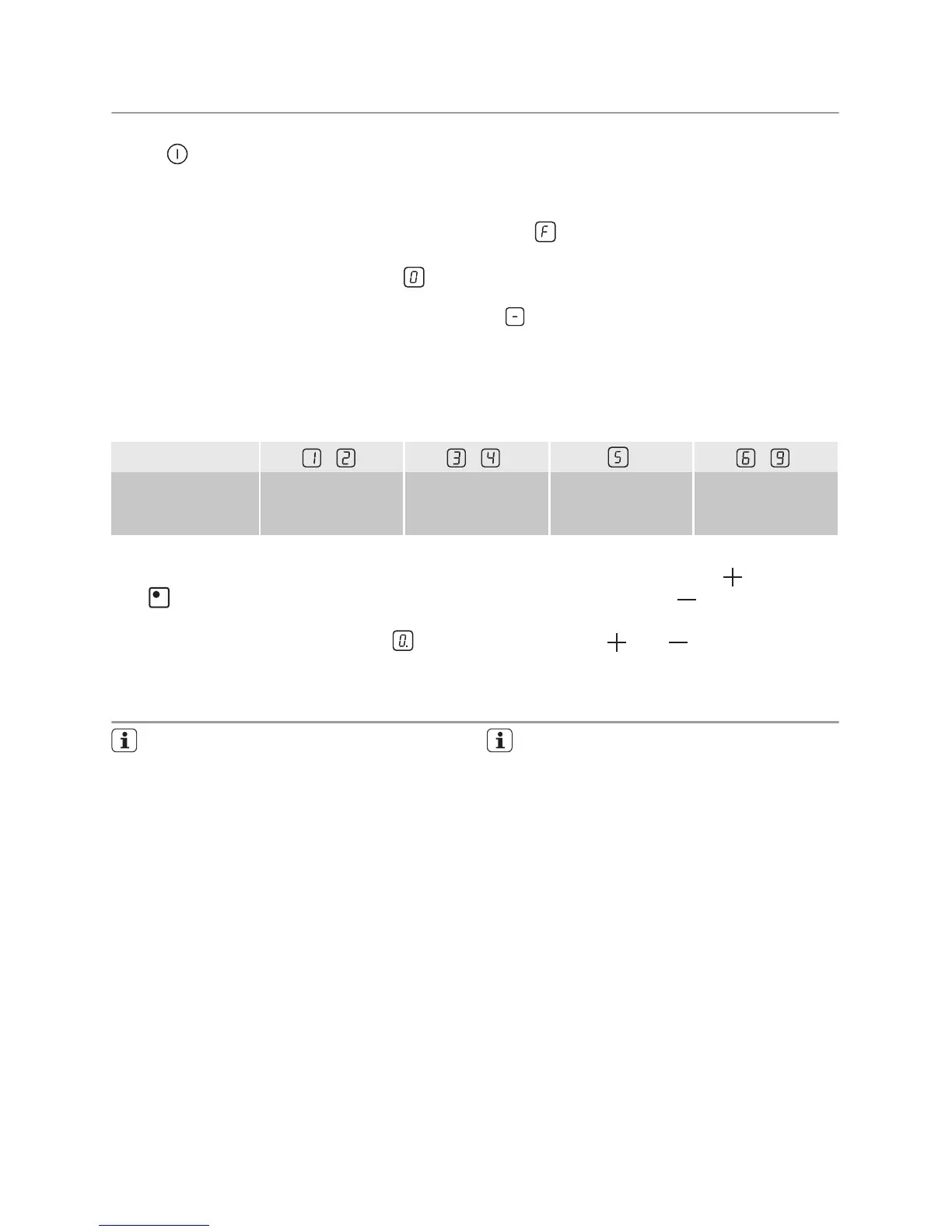 Set the cooking zone. Touch to increase