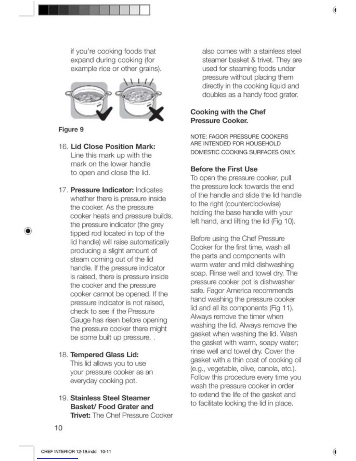 Chef Fagor - Cooking with the Chef Pressure Cooker; Before the First Use