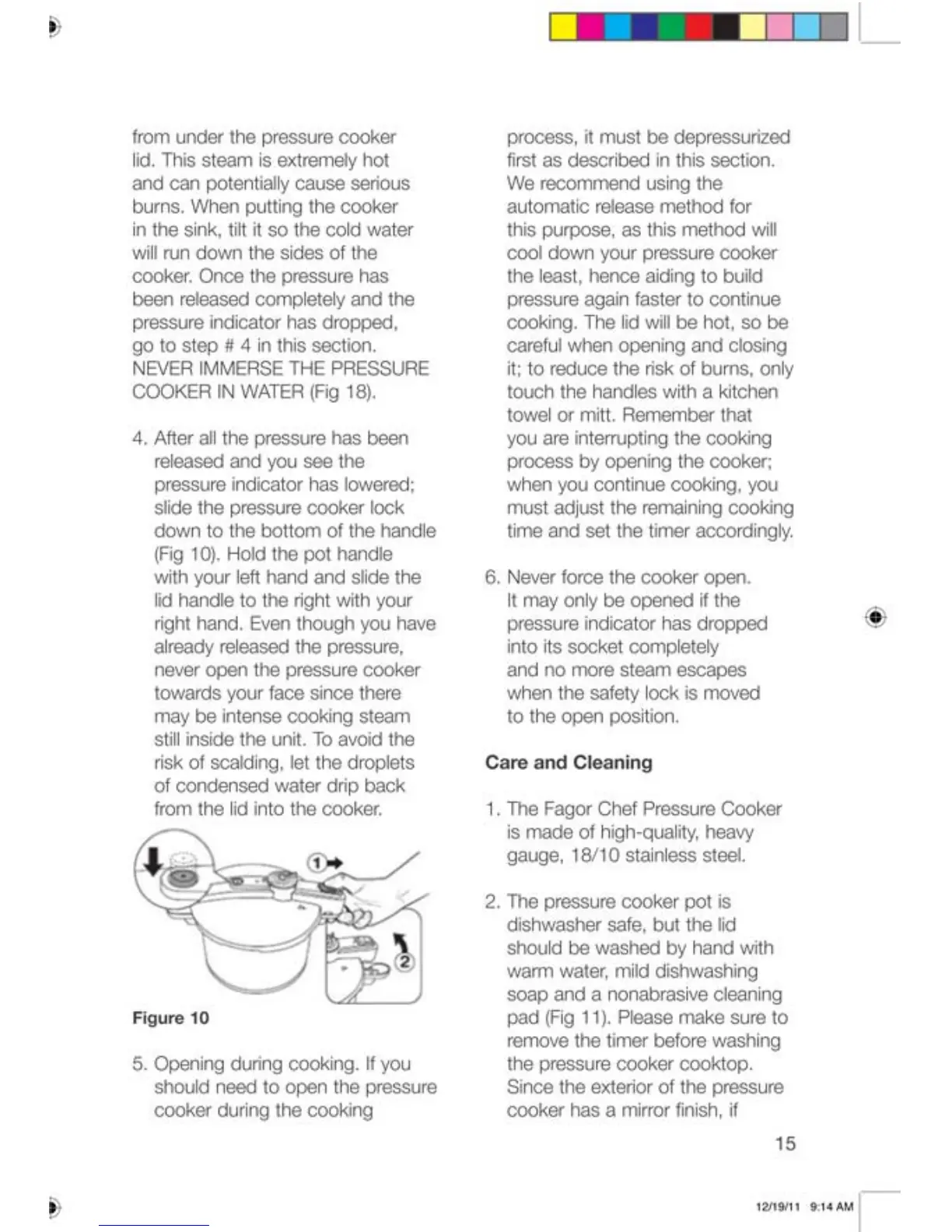 Chef Fagor - Care and Cleaning; Cleaning the Pot and Lid