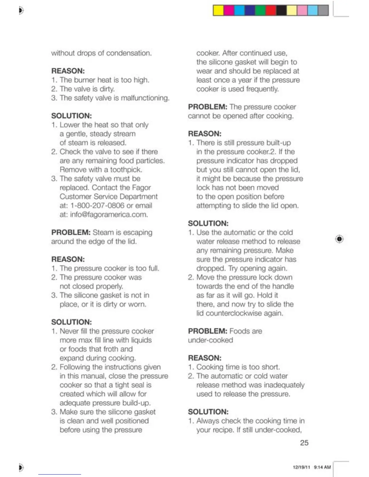 Chef Fagor - Steam Leaks and Opening Problems; Under-cooked Foods
