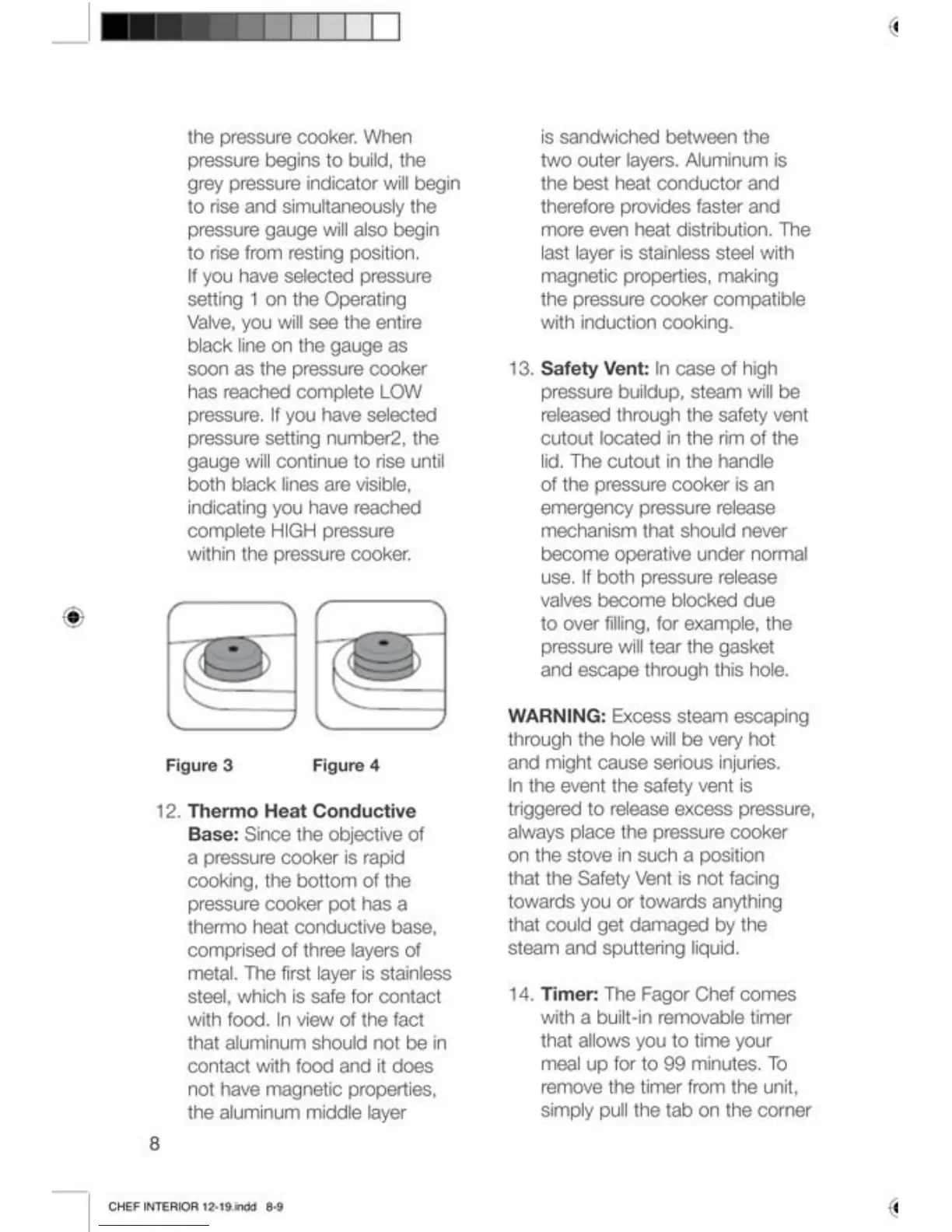Chef Fagor - Thermo Heat Conductive Base; Safety Vent; Timer