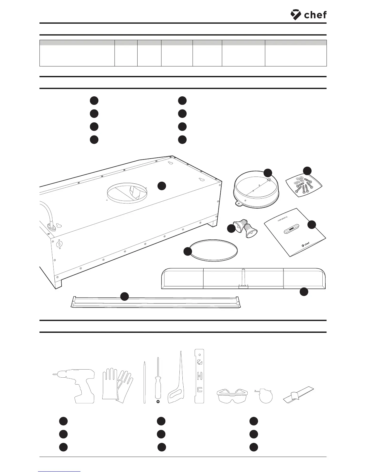 Chef UC-PS38SS-30 - Specifications; Parts Included; Tools Needed