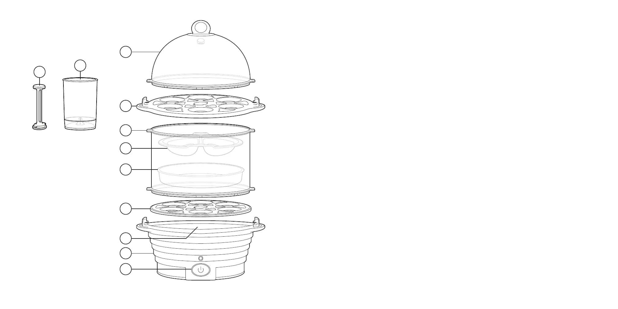 1. Place egg cooker on a clean, dry surface. Plug into the wall outlet.