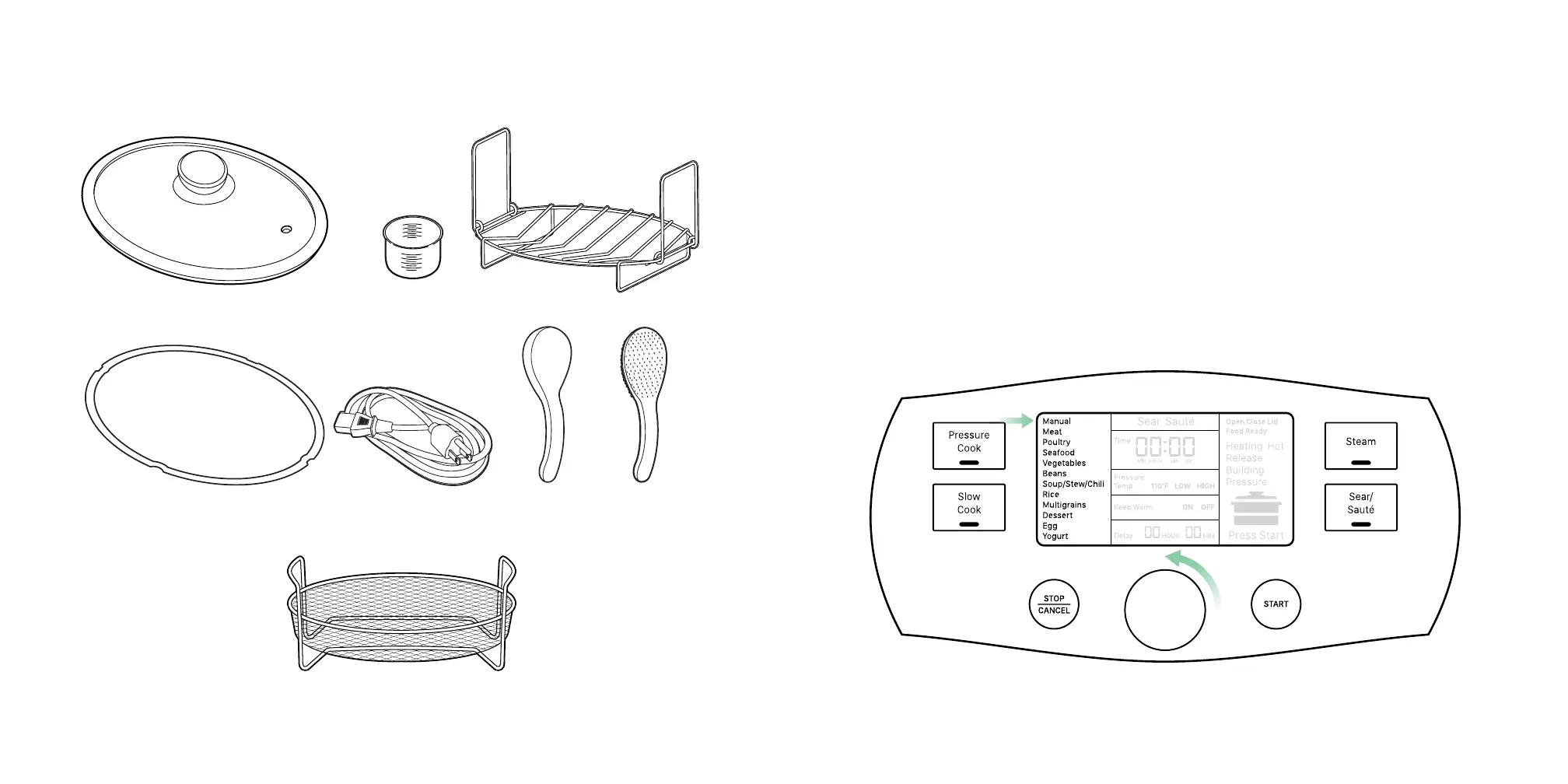 This Pressure Cooker is designed with 18 food presets. Select the preset appropriate for