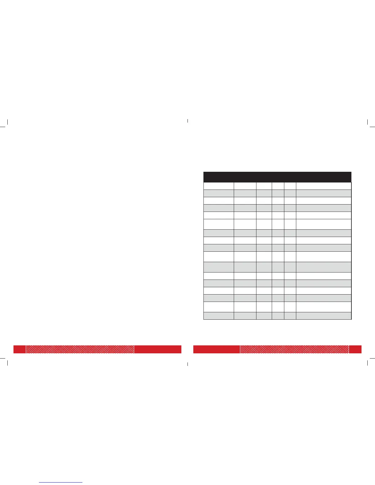 Note: This table is only a guide and does not contain exact recipes.
