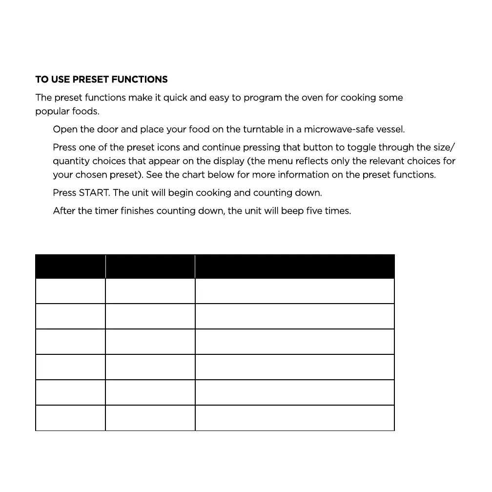 The preset functions make it quick and easy to program the oven for cooking some