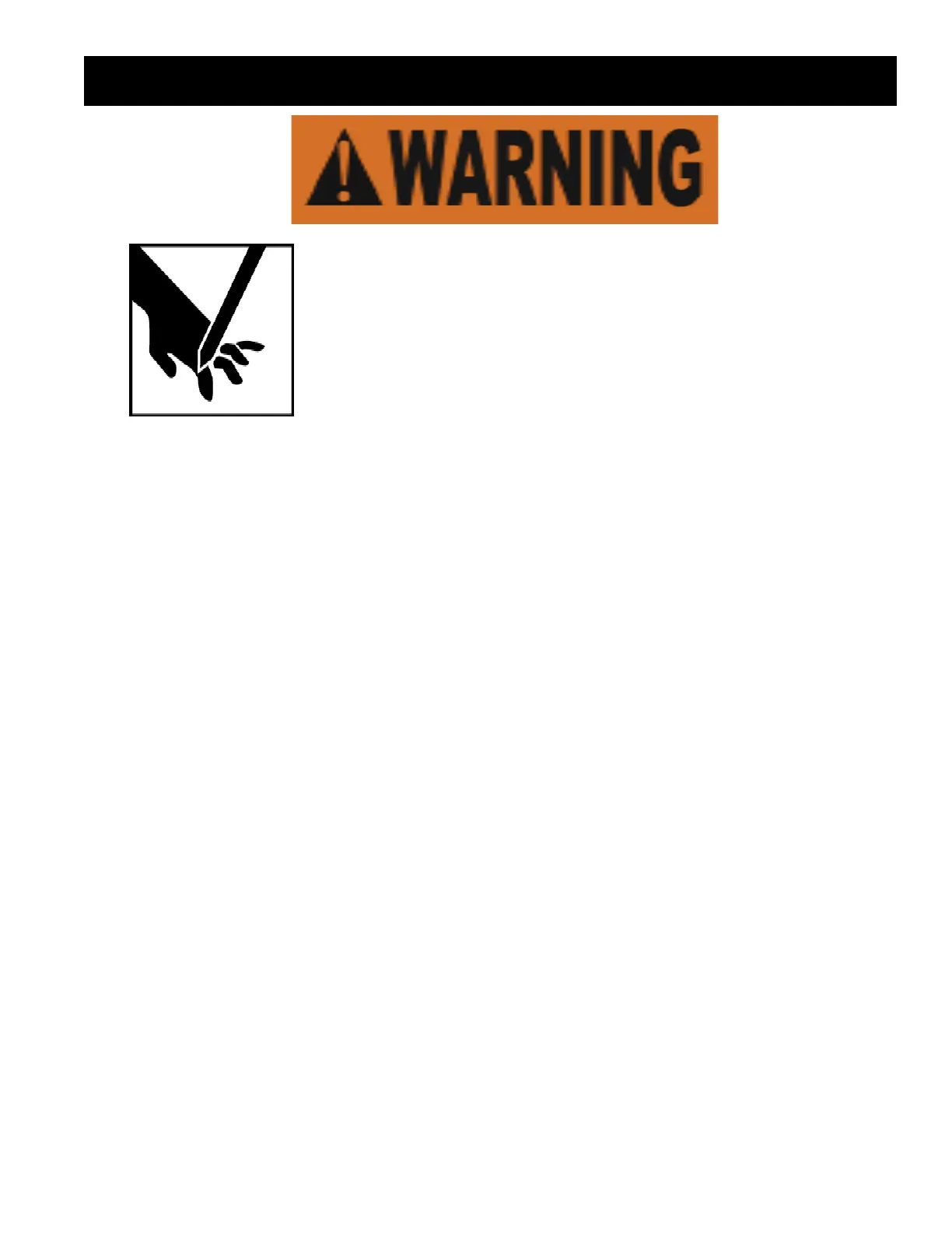 • NEVER OPERATE without knife cover and knife ring guard securely installed.