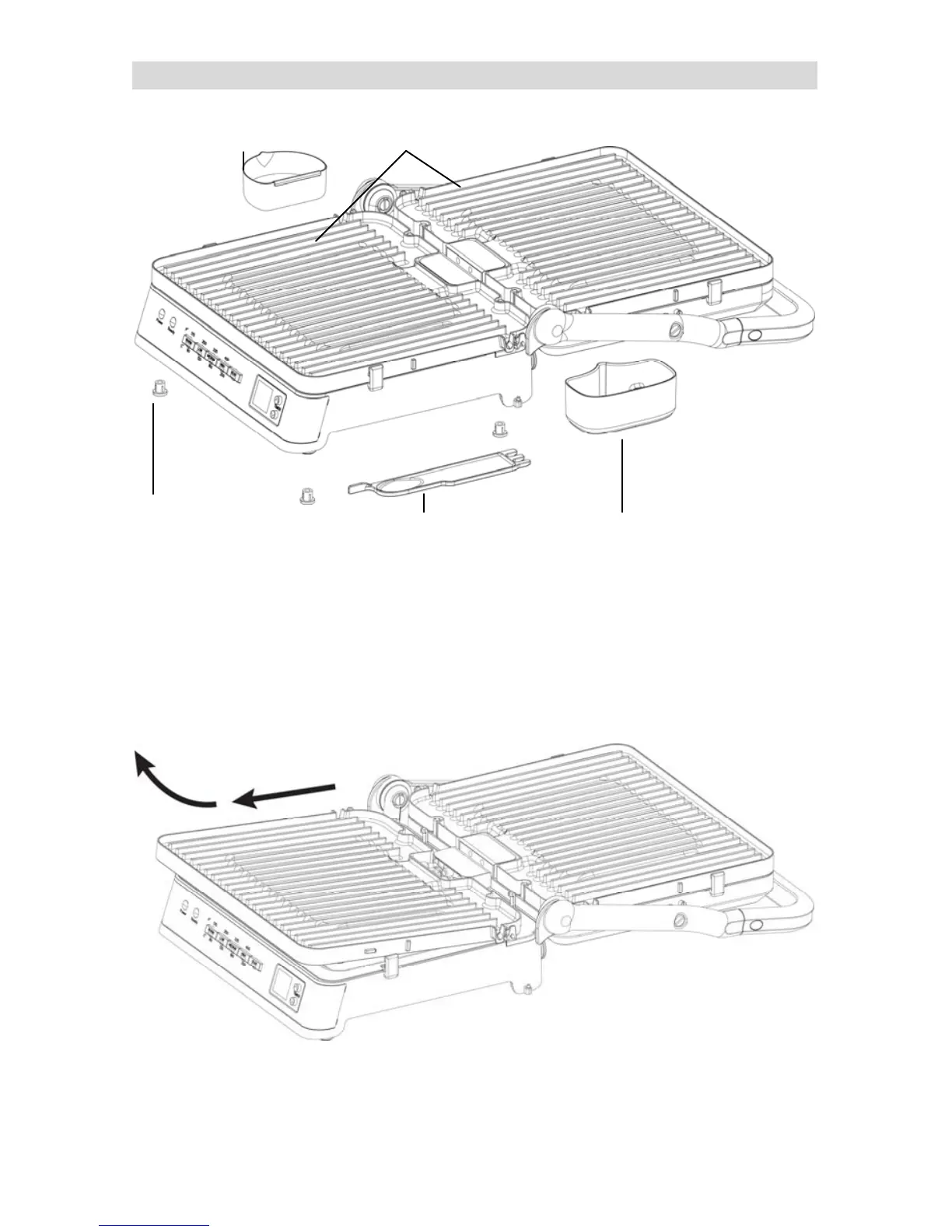 Cooking plates: The removable and reversible, upper and lower cooking plates are