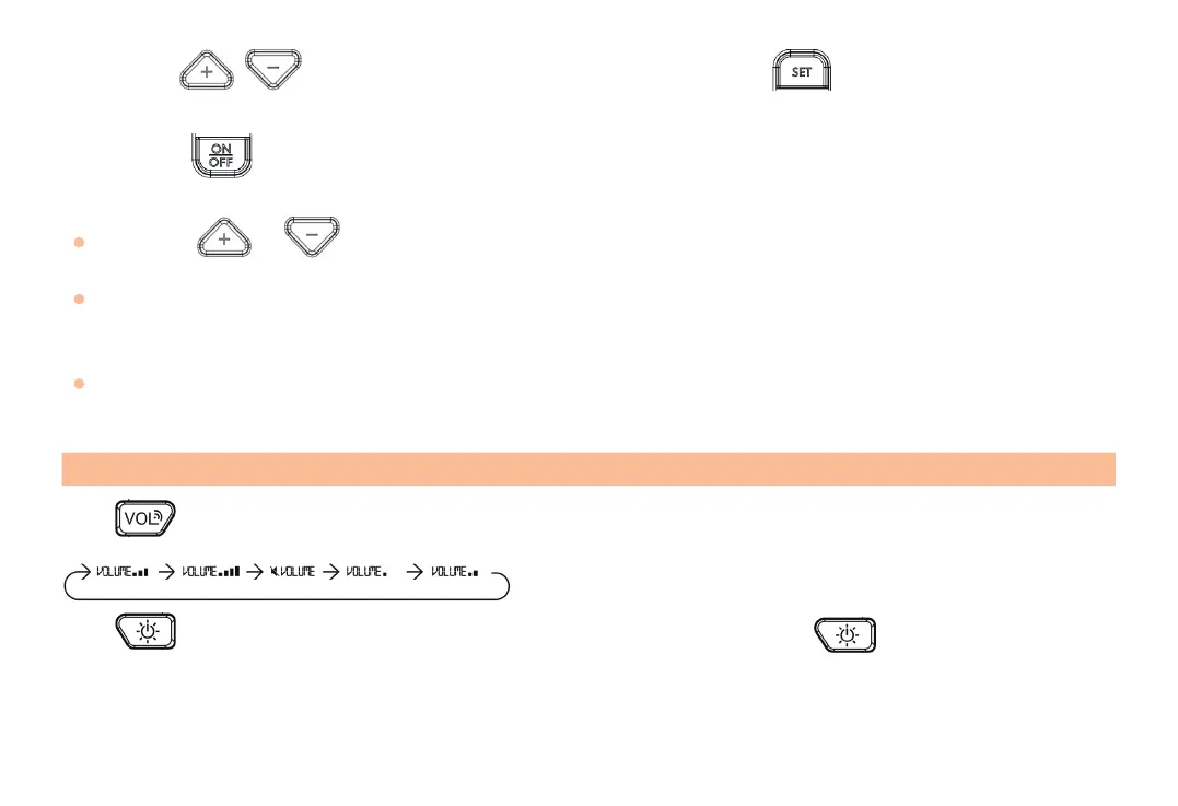 Press to adjust the alarm volume level, there are 5 volume levels available.