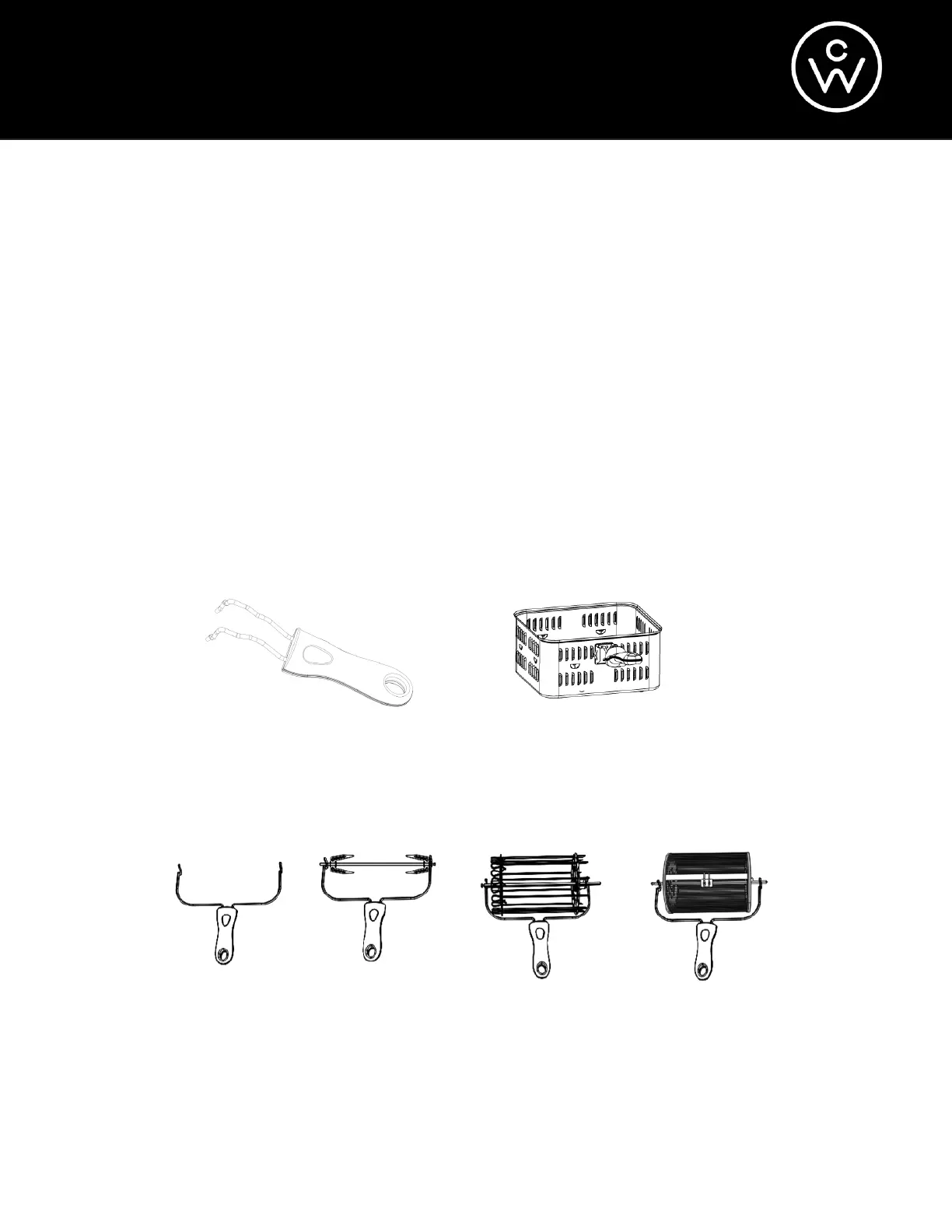 Always use the handle tool when removing the frying basket, skewer rack, baking cage,