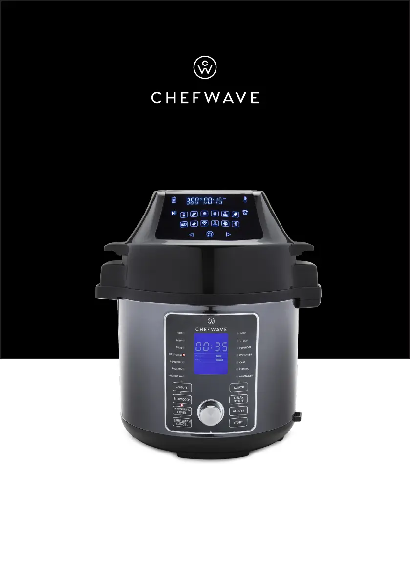 Steam leaking from the sides of the Chefwave Electric Pressure Cooker lid can occur due to several reasons: * The sealing ring might not be properly installed. Remove and reinsert the sealing ring to ensure correct placement. * The sealing ring could be damaged, requiring a replacement. * Food debris may be attached to the sealing ring, so wash the sealing ring thoroughly. * The lid might not be locked properly. Reposition and lock the lid securely.