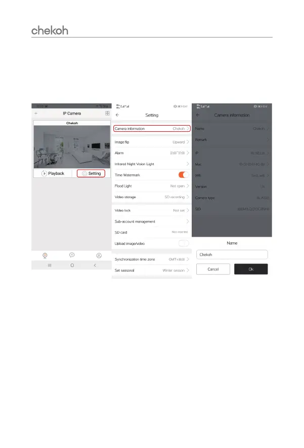 1. Click 'Setting' > 'Camera information' > 'Name'.