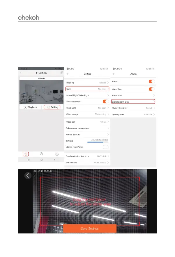 Steps: Go to 'Settings' > 'Alarm' > 'Camera alarm area' >Drag the red frame to adjust the