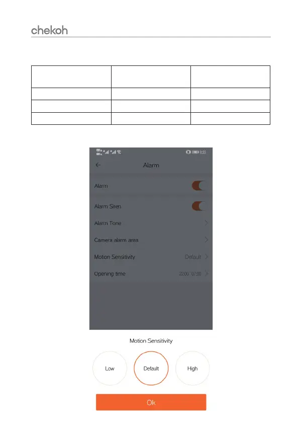 The camera has 3 types motion sensitivity