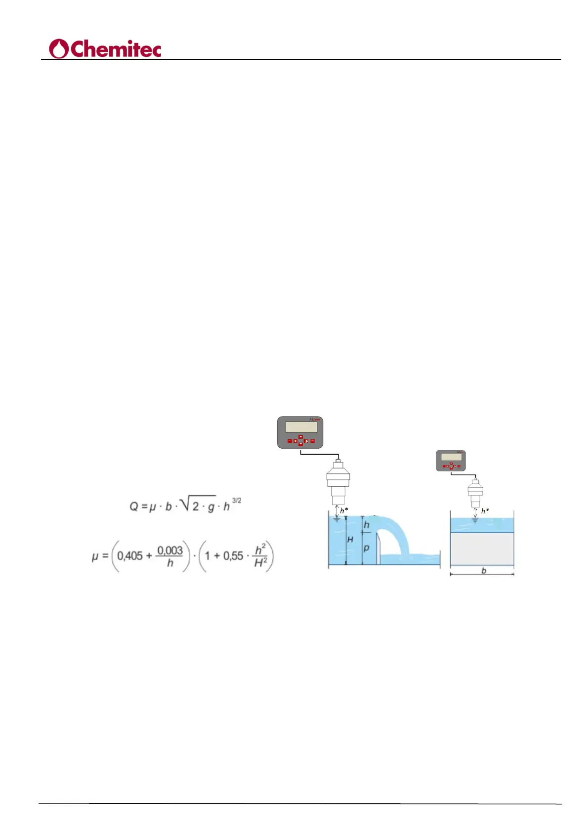Figure 7-4 Scheme and calculation of the flow rate of a Bazin overflow