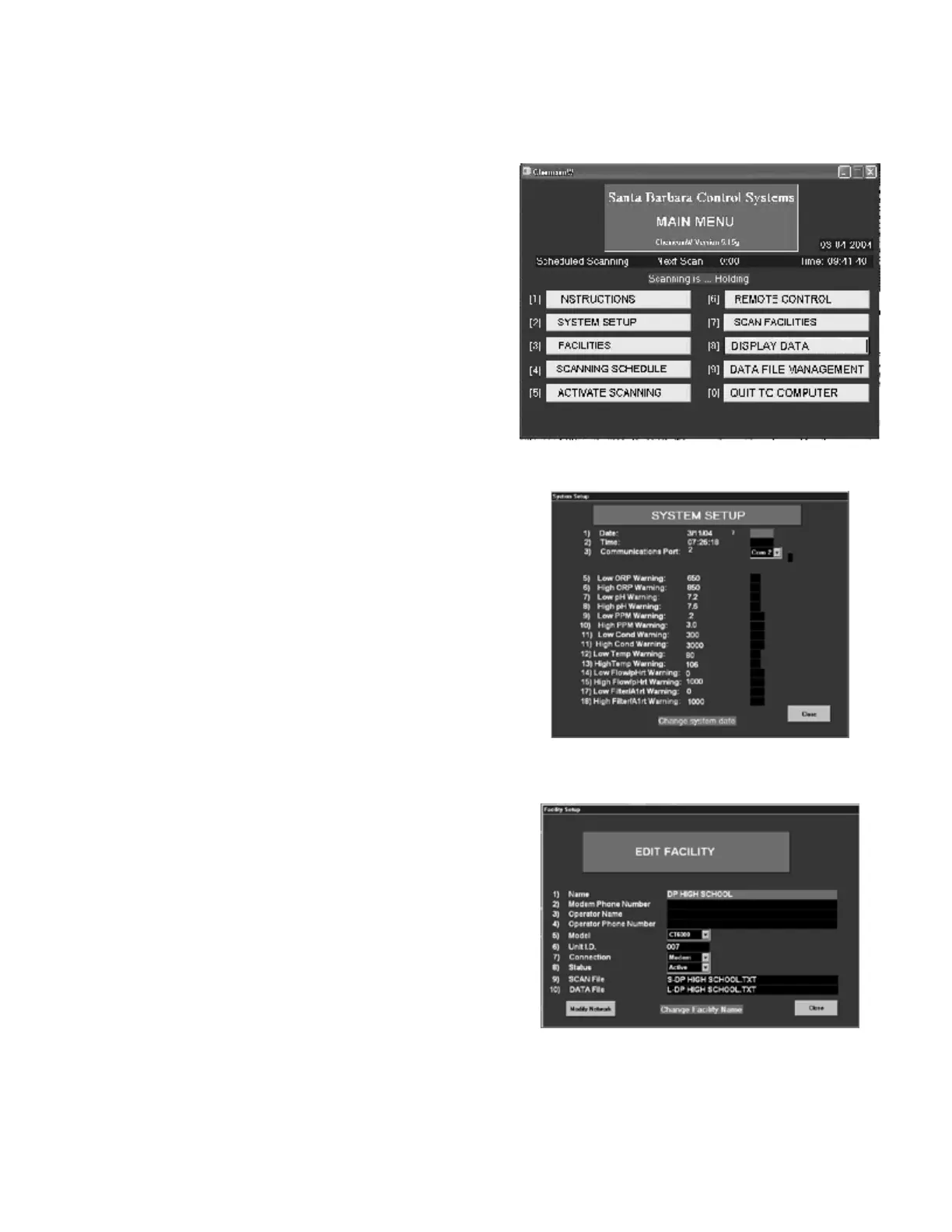 The menu screen on Figure 31 shows that the CHEMCOM
