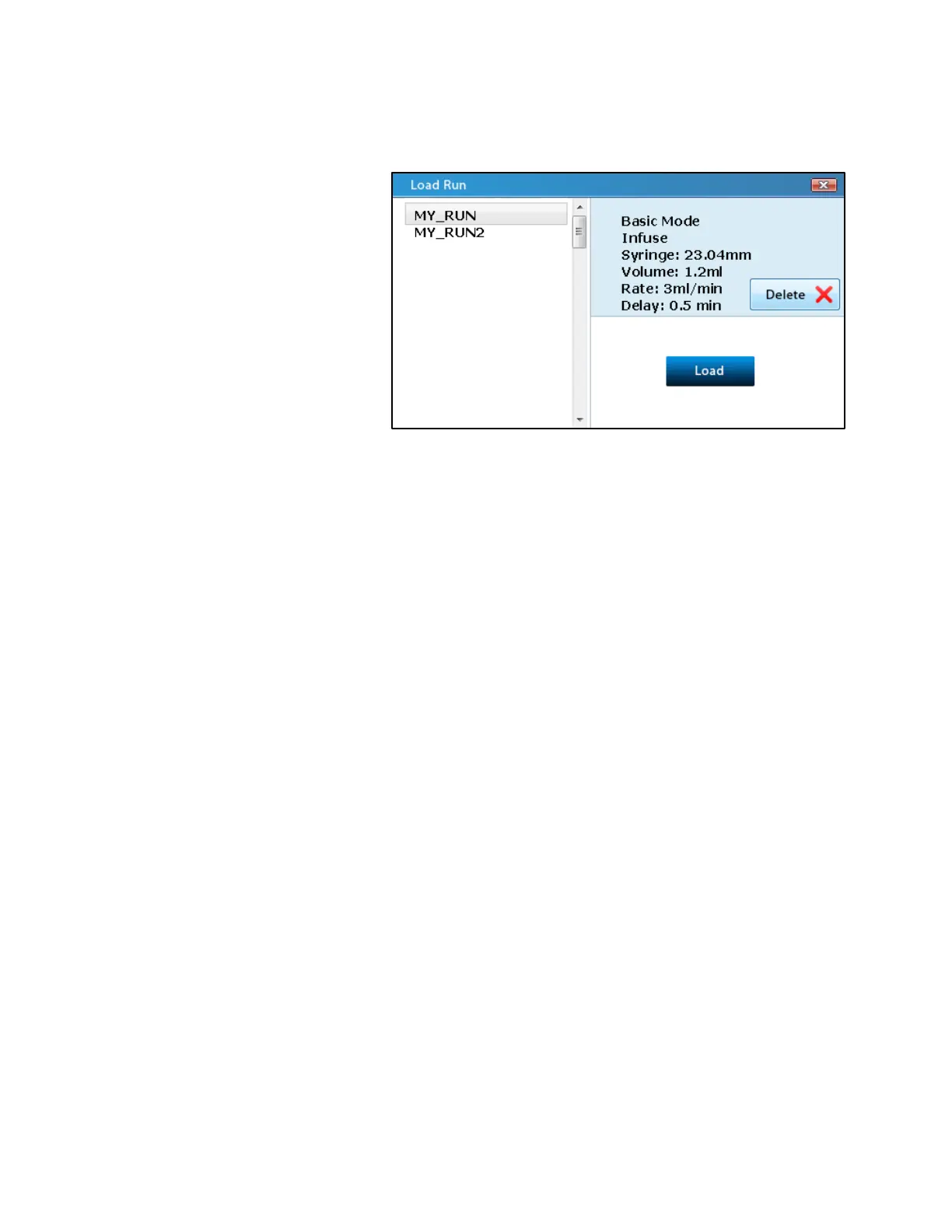 The Load Run screen can be