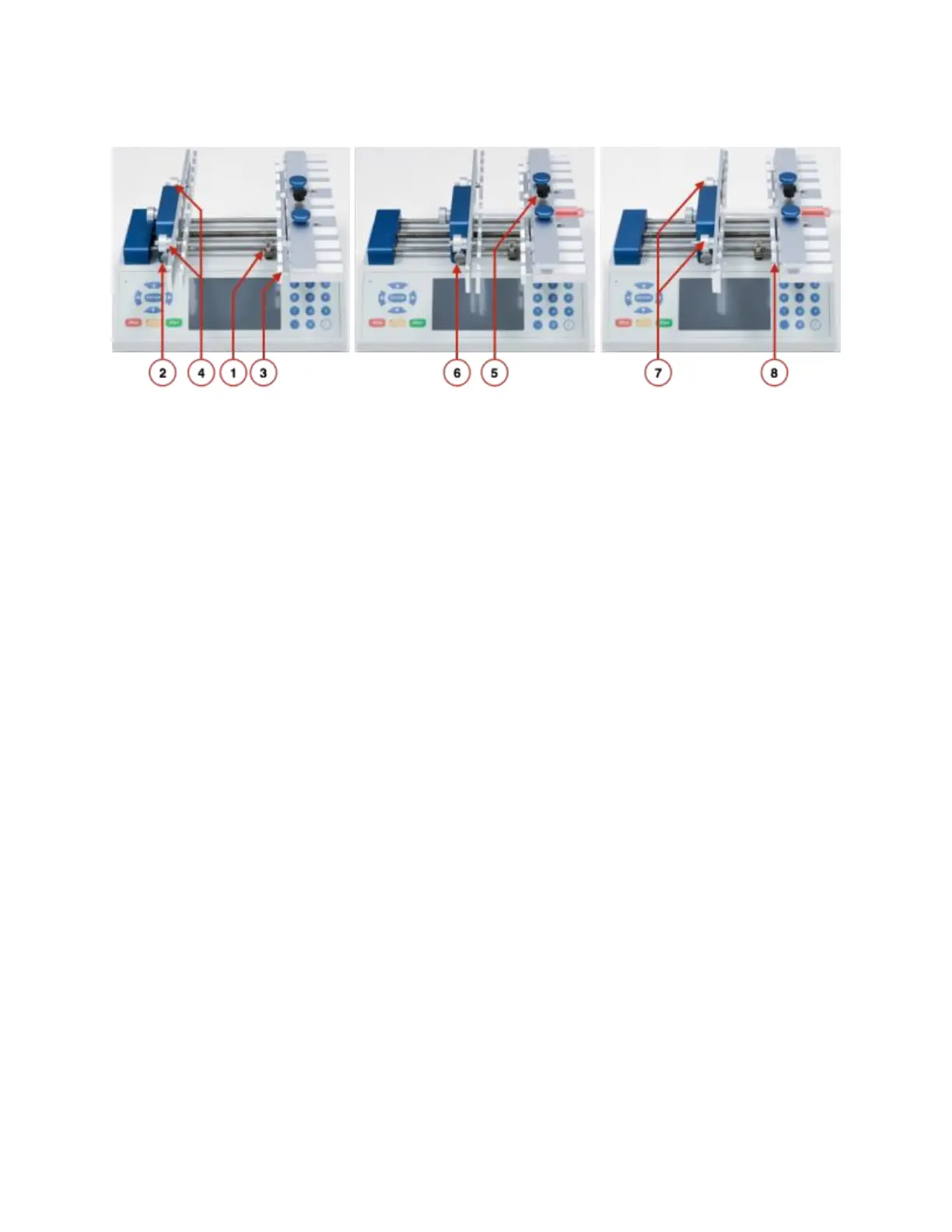 5. Pull up on the spring-loaded syringe clamp bar and place a syringe in each of the