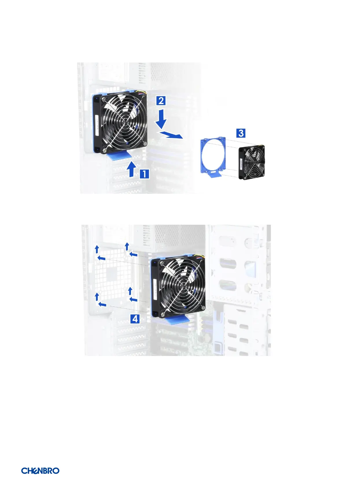 3. Remove the fan from the tool-less fan holder as shown and replace the fan.