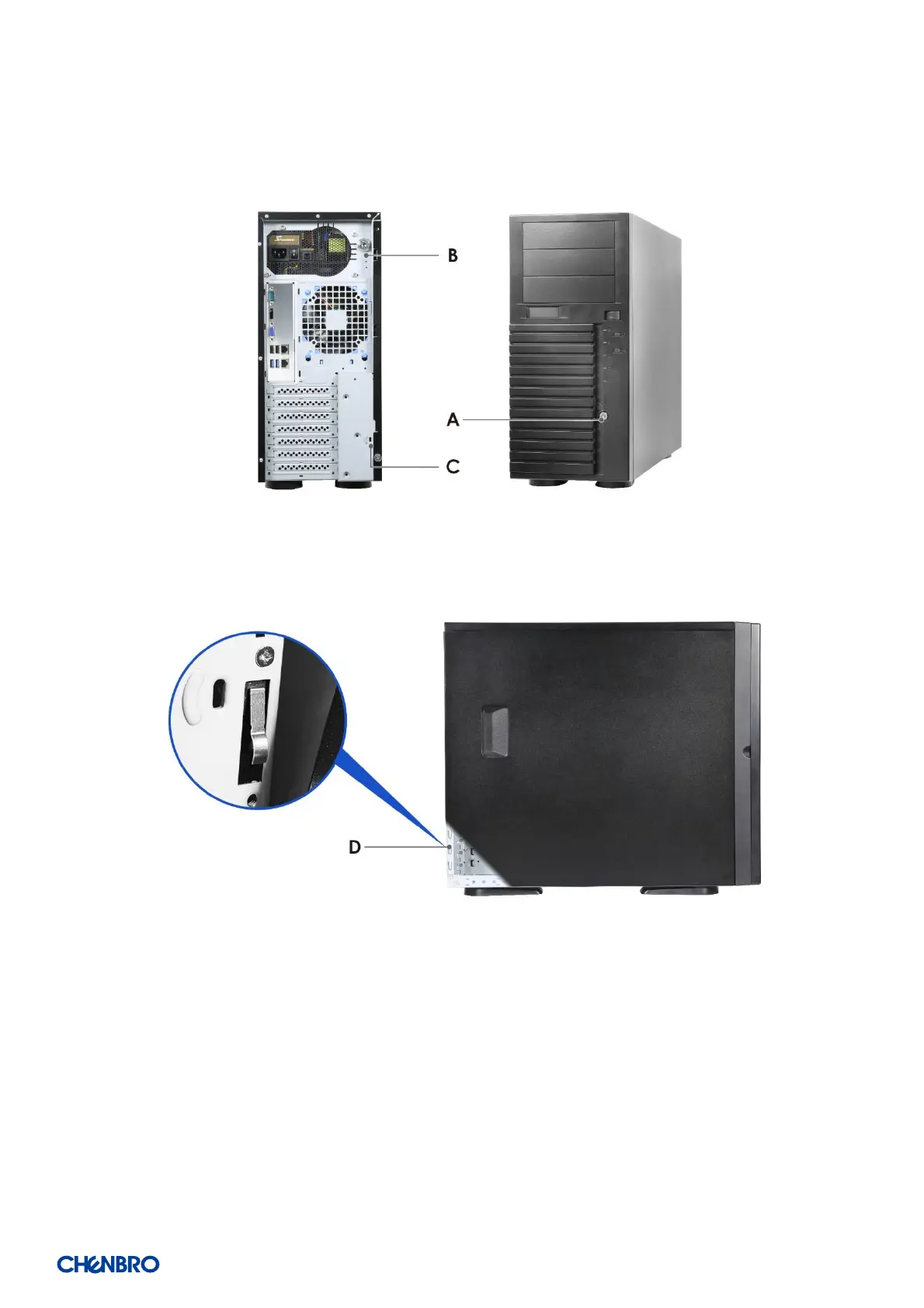 Chenbro SR209 Plus Series - Security Features; Figure 4 Key Lock and Kensington Slot Location; Figure 5 Intrusion Switch Location