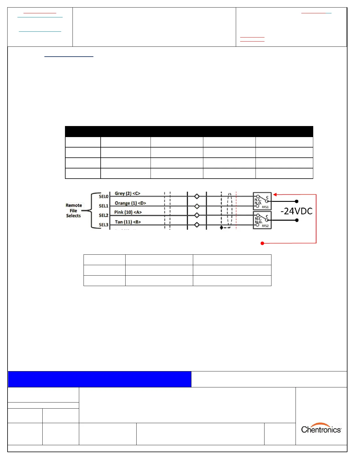 per above. Connect the common (C) side of the File Select relays to the -24 VDC return. Remote File