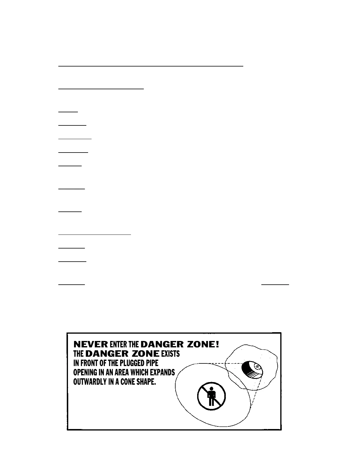 NEVER USE A PLUG IN A PIPE SIZE DIFFERENT FROM RECOMMENDED