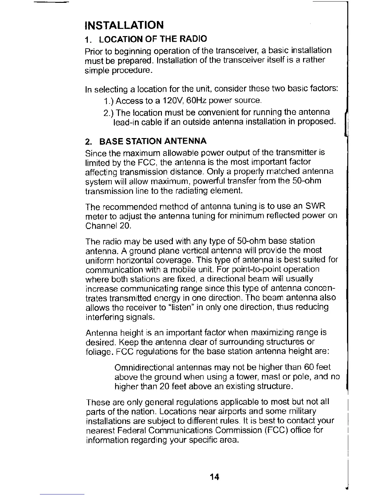 Cherokee CBS-500 - Installation Guide; Location of the Radio; Base Station Antenna Setup