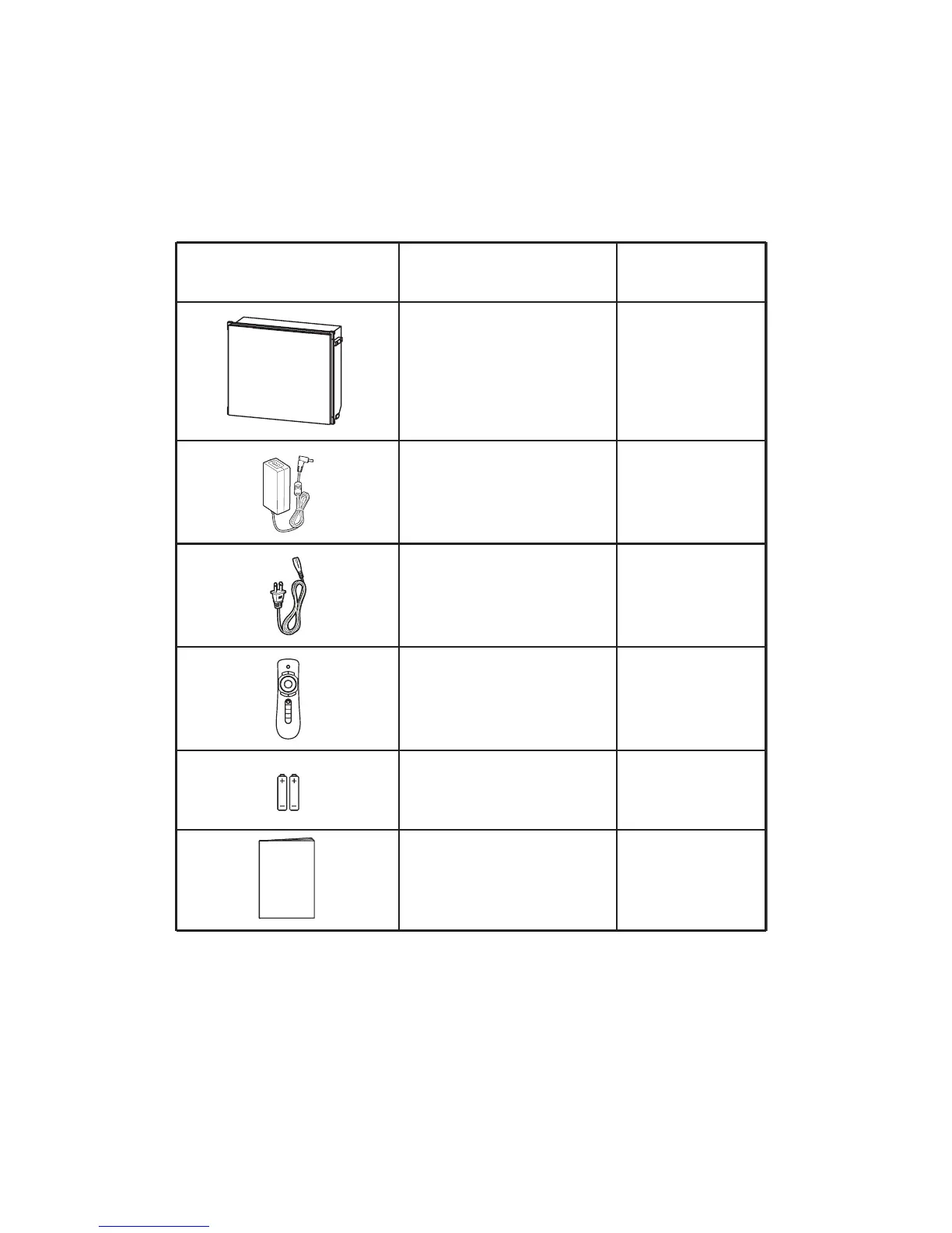 The product package should include the following items, contact with your dealers