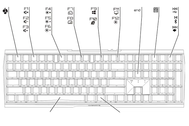 立连接。蓝牙 LED ( ) 灯亮起蓝色,确认键盘已