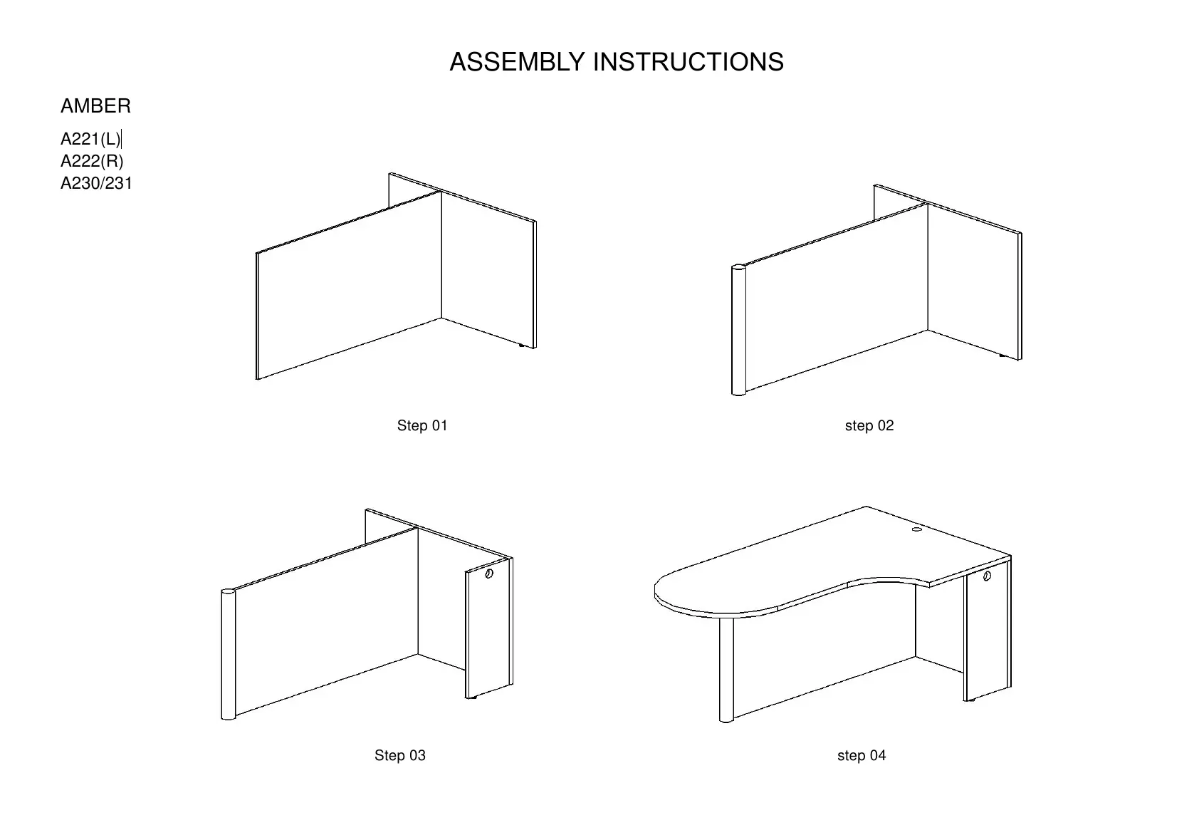 Cherryman AMBER Series - AMBER A221;A222;A230;A231 Assembly; Step 01; Step 02; Step 03