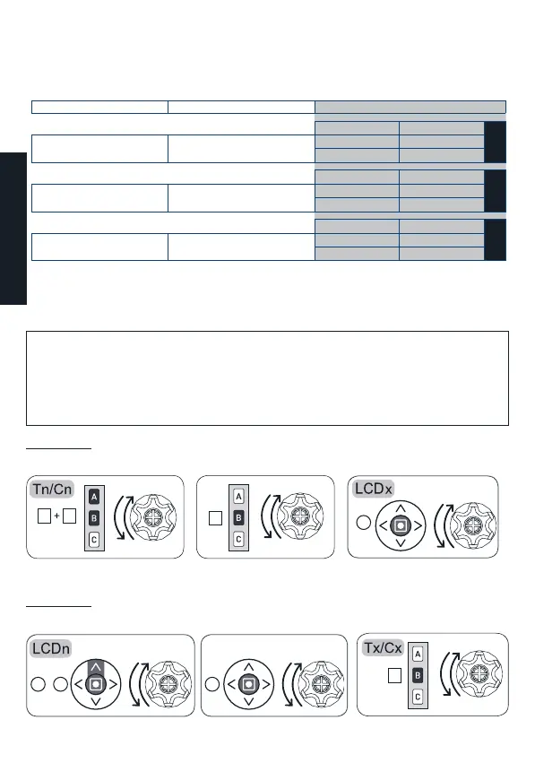 Tx/Cx: remote control/channel to be stored (not LCD) LCDn: Device already stored on a LCD remote control