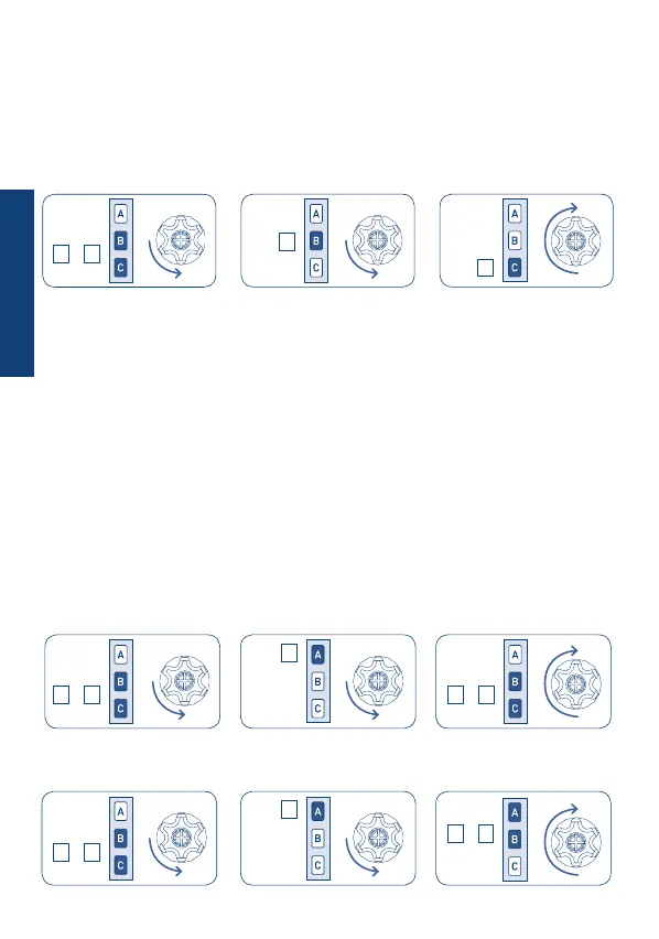 To switch from one setting to the following, perform the sequence as many times as