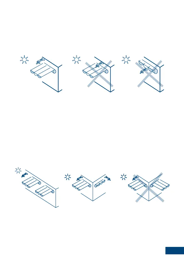 È indispensabile collocare il sensore Windtec lateralmente, il più vicino possibile alla tenda