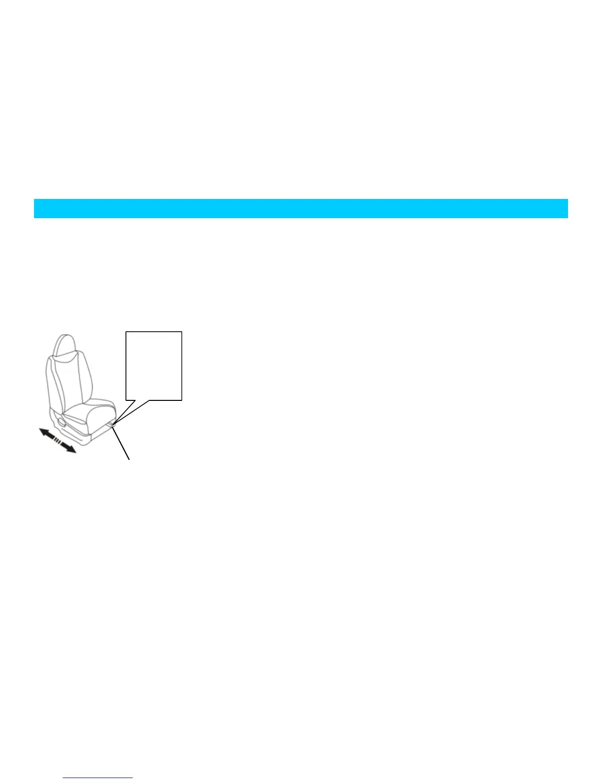 As shown in the figure, pull up the adjusting lever at outer front edge of the seat to move it backward and forward. After the seat is adjusted