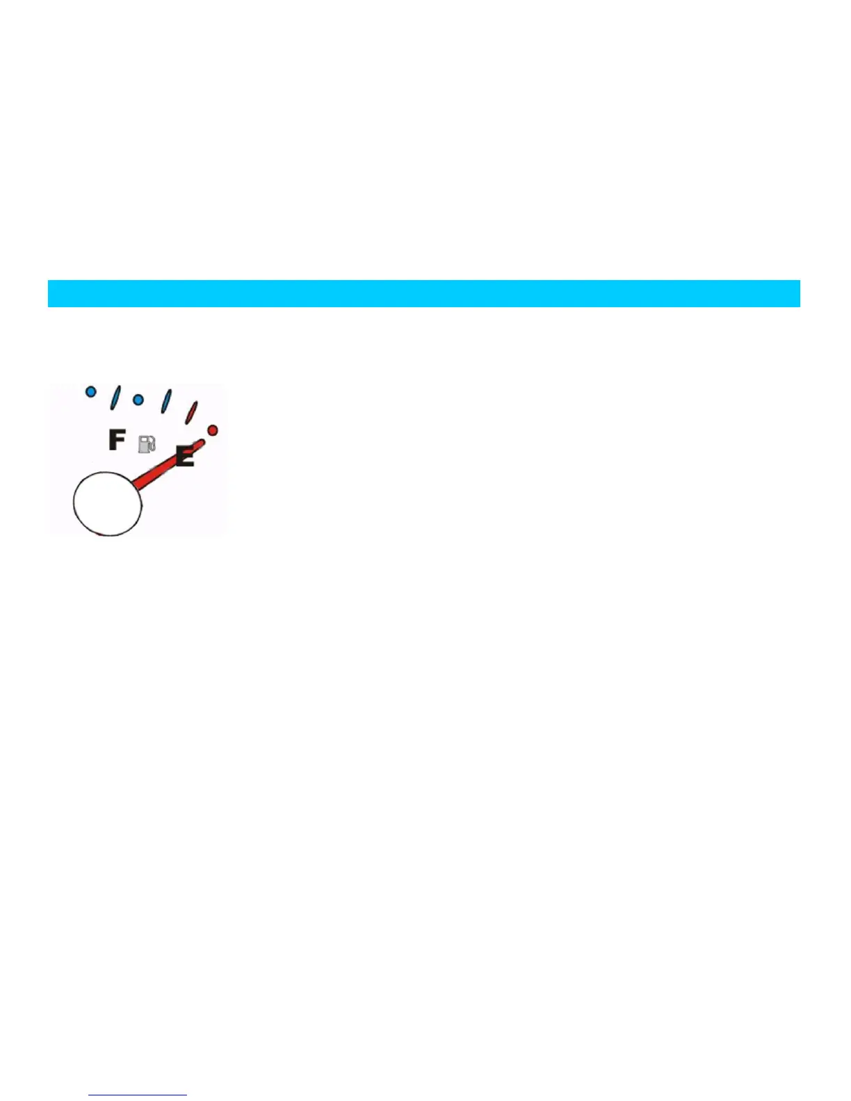When the needle of fuel gauge moves to the position of “E” (the position which the arrow points at in the figure.), which means that the fuel