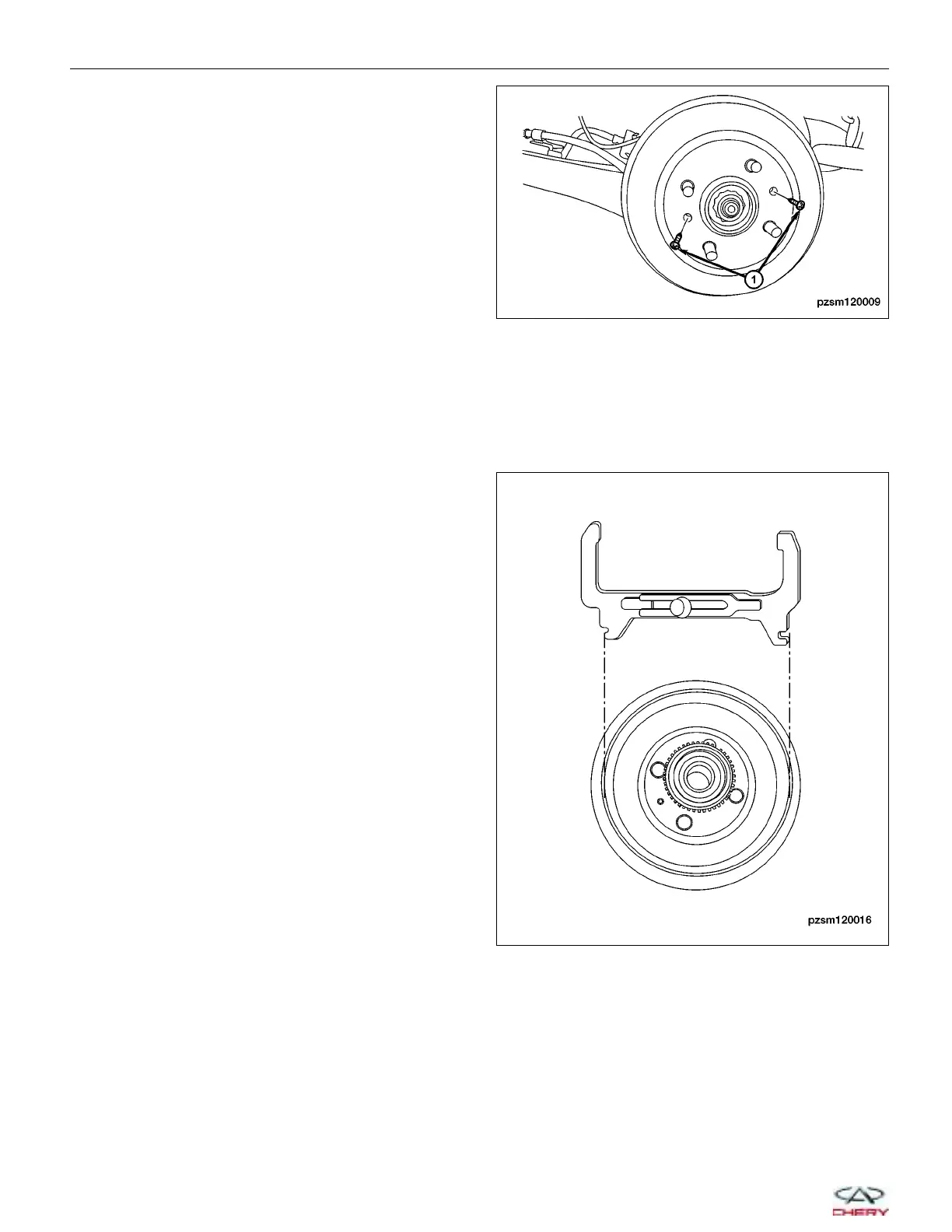 3. Remove the two brake drum mounting screws (1)