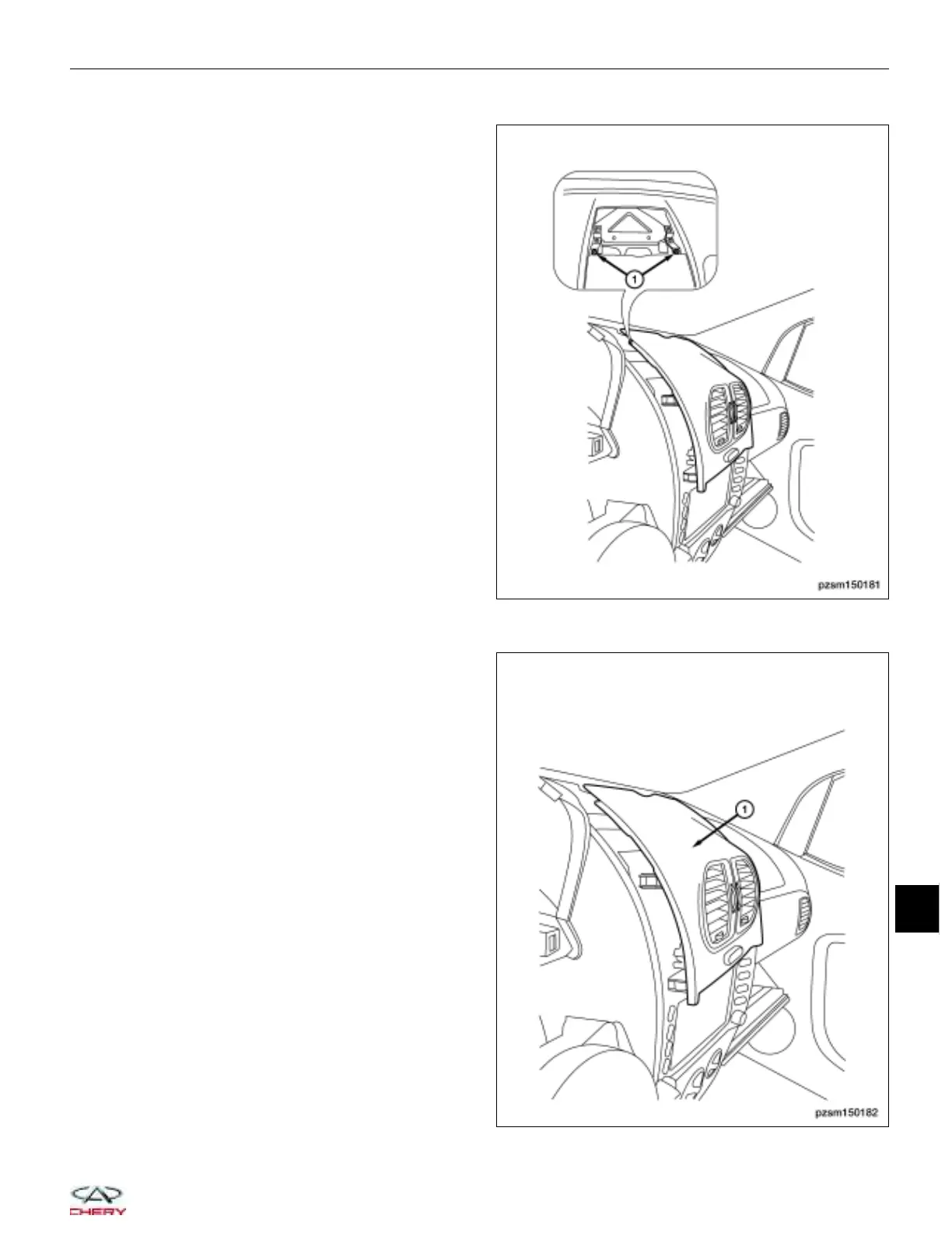 6. Remove the center instrument panel cover (1).