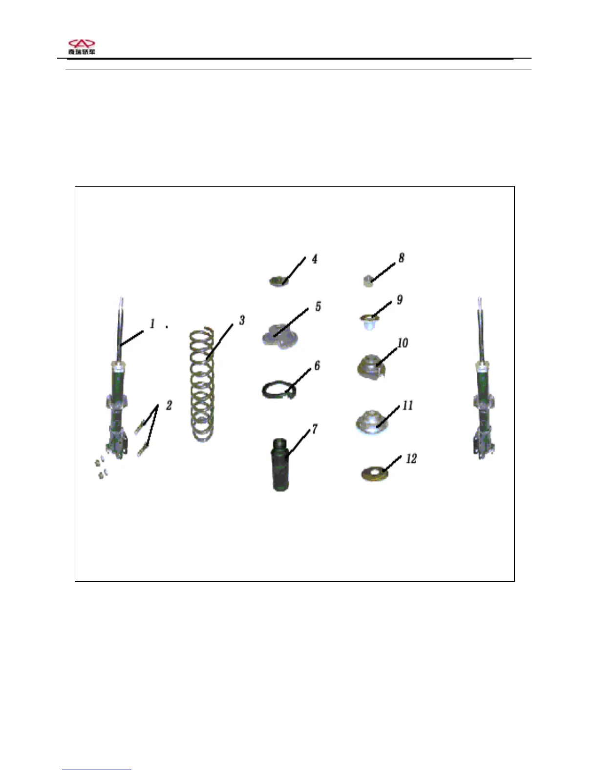1、 Dampener; 2、Joining bolt; 3、Spiral spring; 4、Thrust bearing; 5、Spring upper stand washer; 6、