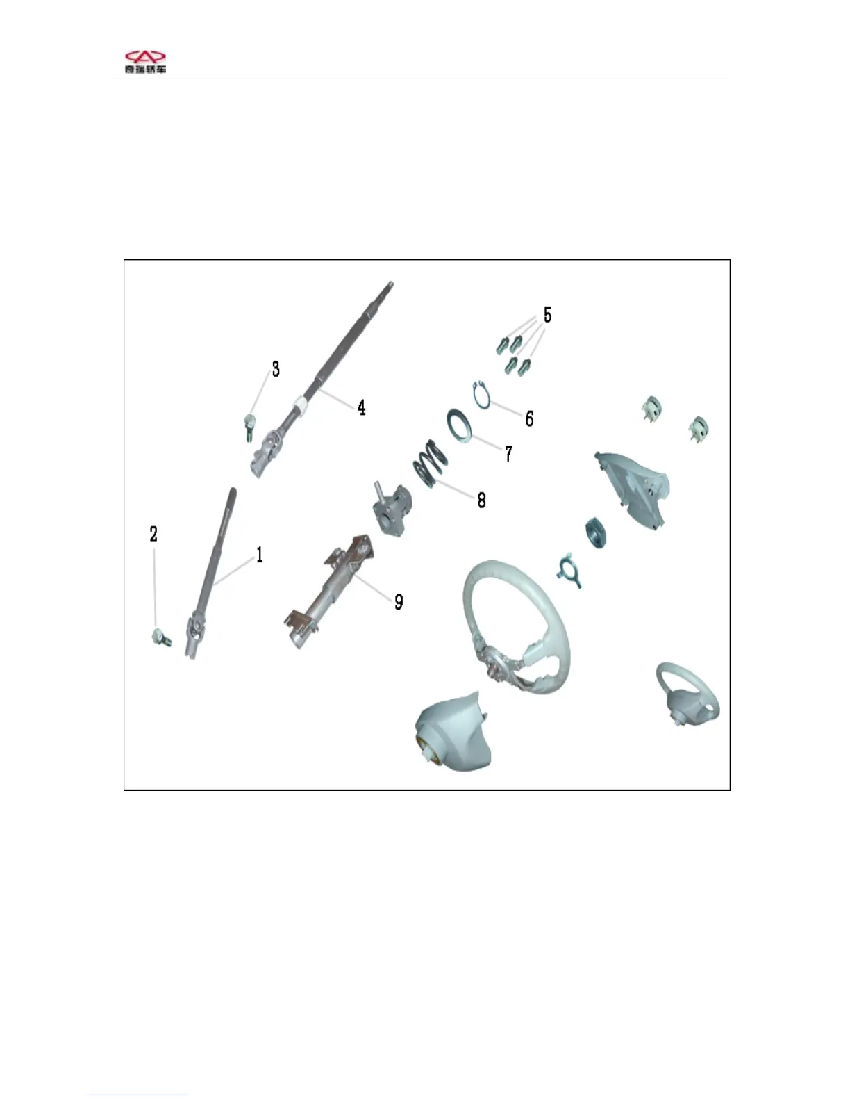 4. Steering core shaft assembly 5. Bolts 6. Jump ring 7. Washer 8. Spring
