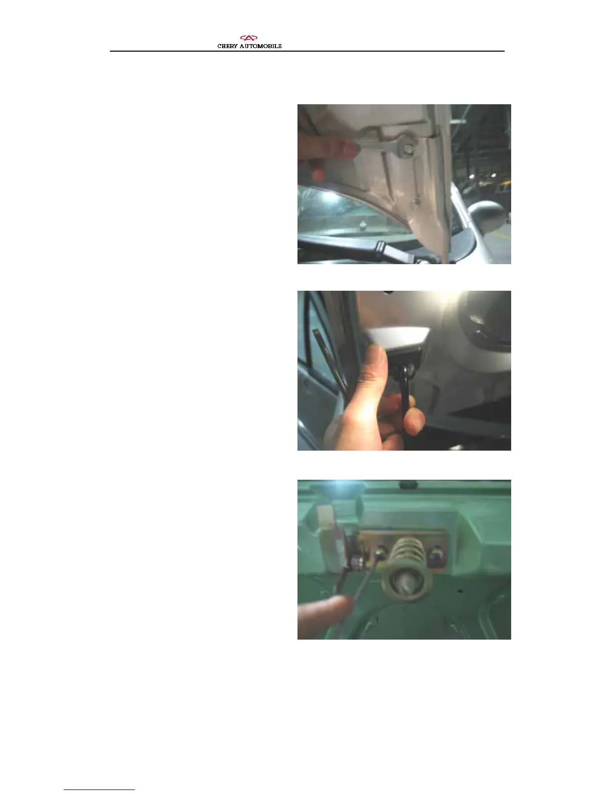 Chery QQ - Engine Hood and Luggage Compartment; Removal of the Engine Hood