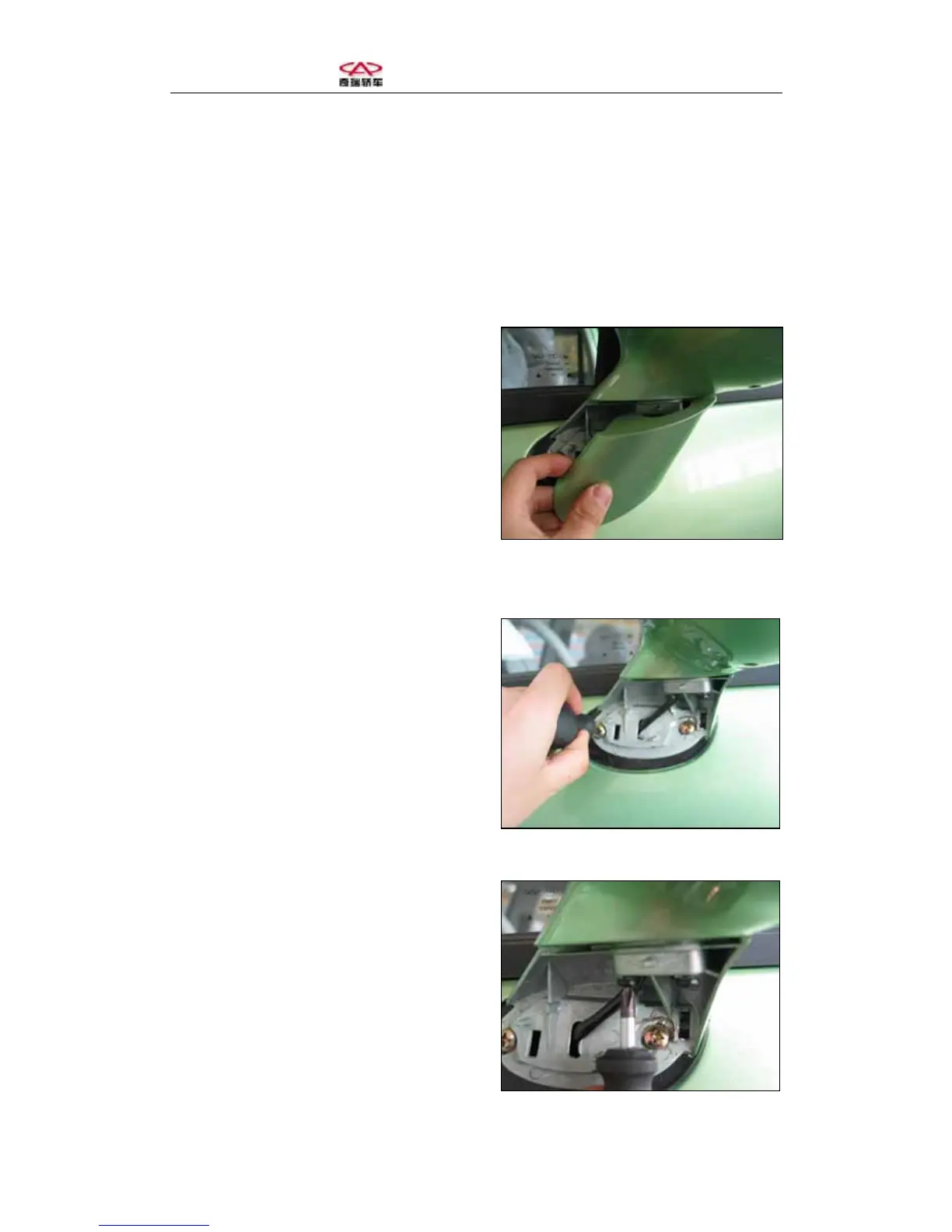 Chery QQ - Outside Accessories; Removal of Rearview Mirror