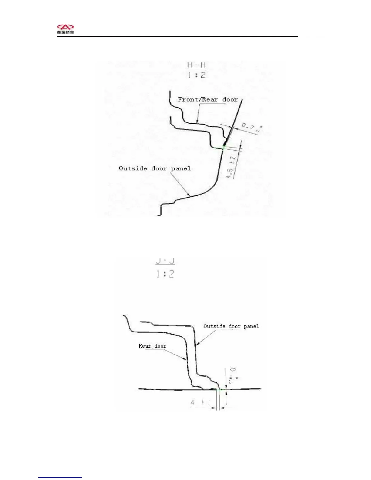 Chery QQ - H-H the Cross Section, Request of Clearance and Plane; J-J the Cross Section, Request of Clearance and Plane