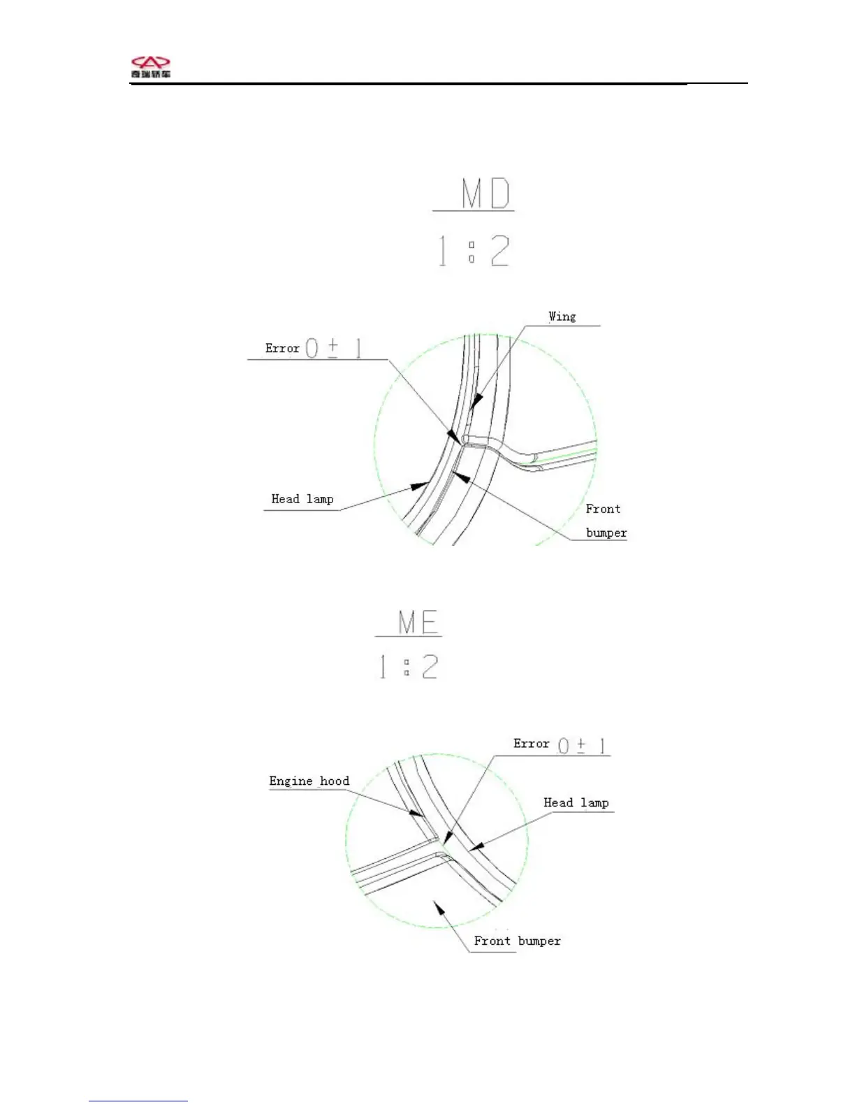 Chery QQ - MD the Cross Section Enlarging Figure, Request of Plane Is 0±1; ME the Cross Section Enlarging Figure, Request of Plane Is 0±1