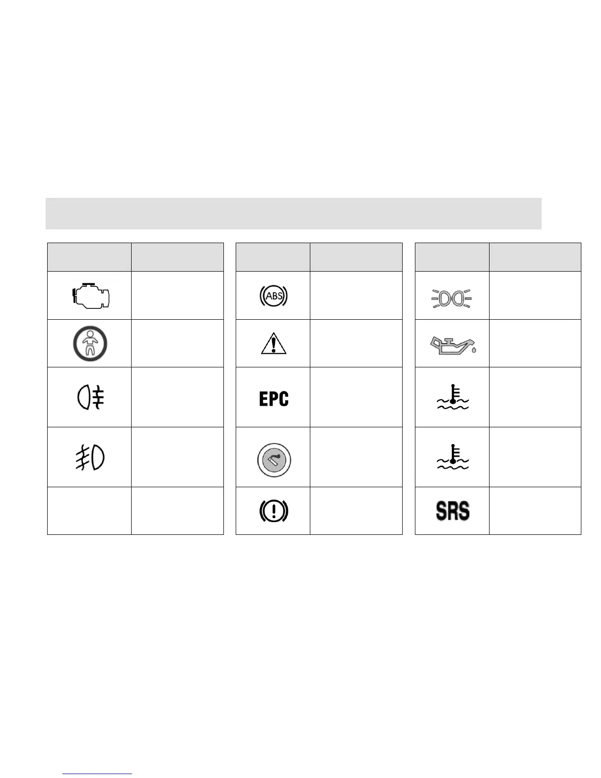 Description of Common Symbols on Vehicle