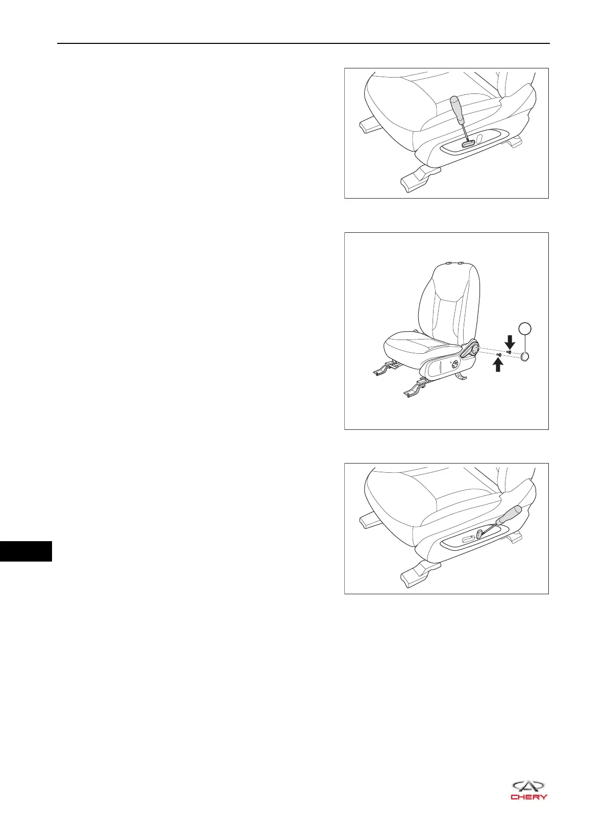 6. Remove the driver seat reclining adjuster handle.